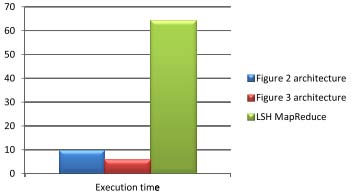 -An Efficient Mapreduce-based System to Find Userlikeness on Social Networks Also to identify equal fields on different data sources it is necessary to have the RiDaULiEqual table. Table 5 shows RiDaULiEqual. Then all rows that are equal to extracted ColumnIDs are retrieved from the RiDaULiFact table. Emit function execute queries and put results into the specified table on the specified server. If the specified table does not exist it creates a table with the specified name. For the Score calculation, many algorithms can be used. Here we use a simple algorithm, in which input users data items are compared with the same data items of existing users. If the data item value of the existing users is exactly equal to the input user's data item value, then its Score is equal to two. Otherwise, if the user's data item value is partially similar to an existing user's data item value, then the Score is equal to one. If there is no likeness between the input data item value and the existing data item values then the Score is equal to zero. In the data sources there are many misspellings, imprecise terms, colloquial terms, etc. To solve these problems we use metadata to create associations between columns. In the Query builder phase, we can define column groups which contain the main term together with its colloquial terms, imprecise terms and prevalent misspellings. When an input column is used in a query, all other Fig. 4 : RiDaULi Process to execute query Group members are considered and their related information is gathered. If there is a bottleneck in the Reducer phase, we remove these via combiners. Fig. 5 shows the RiDaULi architecture with combiners. In this We used data from different Social Network systems, which in turn have different standards for storing data, by Using RiDaULi, we found that we could easily achieve the required results on a reliable and data available structure. As shown in Fig. 4, twentyone servers were used in Phase 1 and twenty-one for Phase 2. For thirty seven different queries we achieved an average time of 9.42 seconds. As shown in Fig. 5, we then added five combiner servers with the same specifications to each of the two phases, for a total of 52 servers. The average execution time for thirty seven queries improved about 60%, decreasing to 5.65 seconds. and 5. Also we used the LSH algorithm over MapReduce for evaluation. 52 servers with the Table 7 specification were used. For thirty seven different queries we achieved an average time of 63.11 seconds. Fig. 7 shows the results.